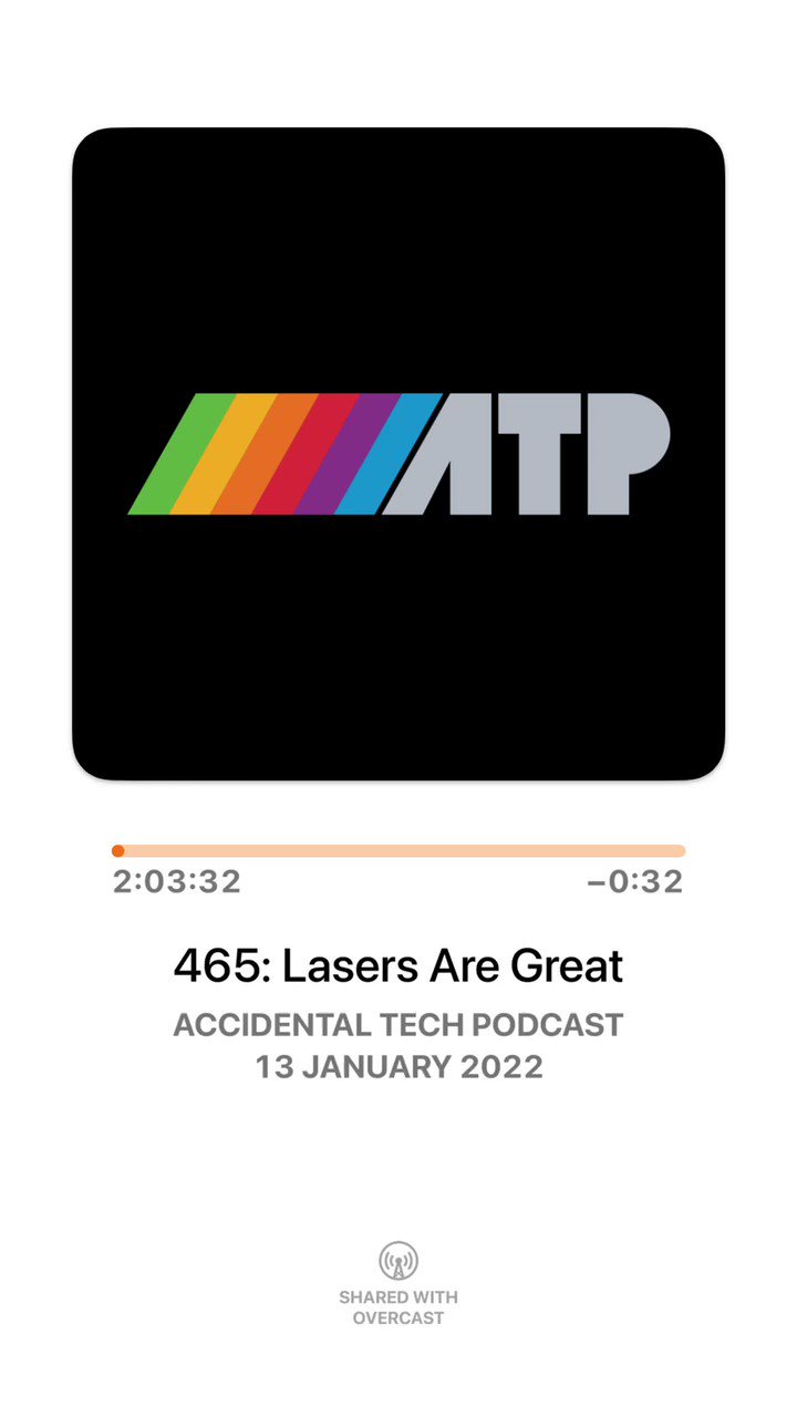 Show Accidental Tech Podcast Ep Plausibly Viable - Mar 31 2022. Open in Pocket Casts. If you like to listen to a bunch of nerds discussing apple and big events in tech then this is a good podcast for you.